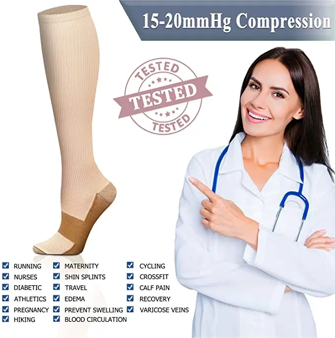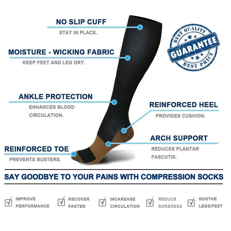 3 Pair Copper Compression Socks Women Men Anti Fatigue Pain Relief Graduated Unisex Compression Stockings Knee High 15-20 MmHg