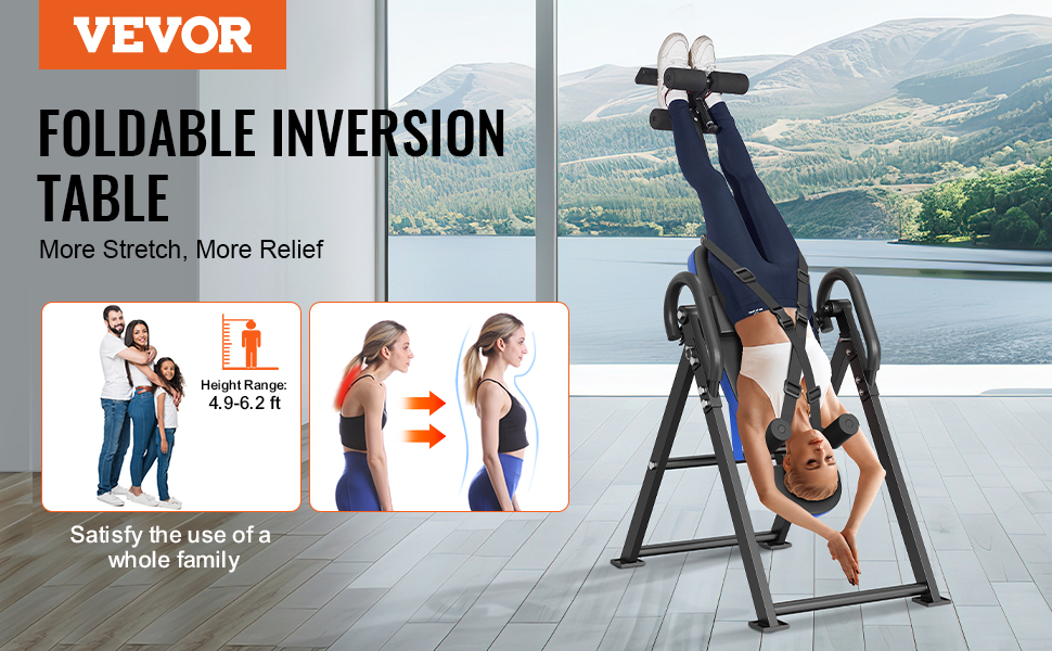 • 4.9-6.2 ft Adjustable Heights: Our folding inversion table is height adjustable, making it suitable for all family members. Whether you're tall or short, you can easily adjust the table to fit your height, ensuring a comfortable and effective inversion experience for everyone.