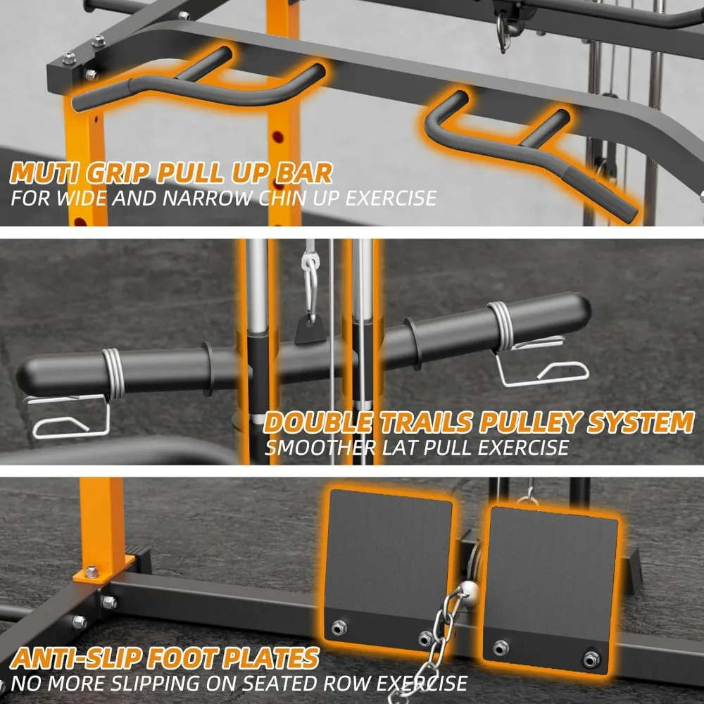 • 【Unique Double Chrome Bars Pulley System】Our double chrome bars high and low pulleys offer a smooth, wide range of upper and lower body exercises for a strong and confident physique. Use the cable pulleys to target all muscles, including your chest, shoulders, back, biceps, triceps, and abdomen