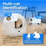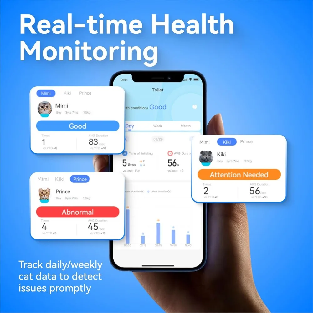 - Multi-Cat identification & Health Monitoring: Our litterbox keeps track of each cat's usage with smart gravity-sensing technology. The app (works with 2.4GHz Wi-Fi) sends personalized health updates in real-time, so you can easily monitor your cats' habits and well-being